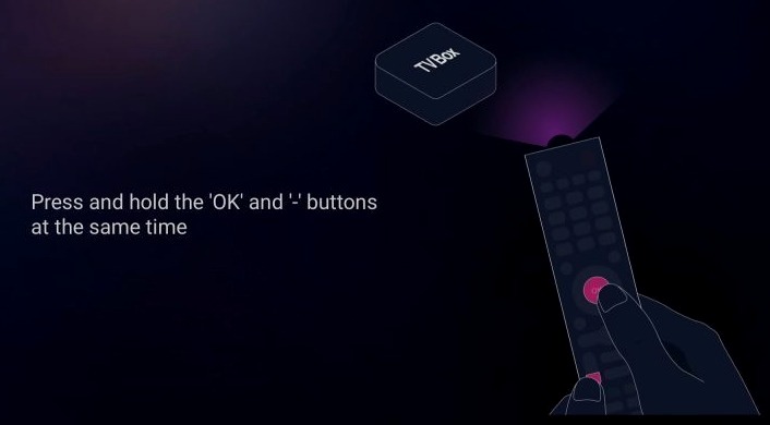 2.Pairing a Bluetooth remote control: Press and hold the [OK] and [-] buttons at the same time. After pairing is successful, “Remote control connected successfully” will be displayed and the next step will be automatically entered;