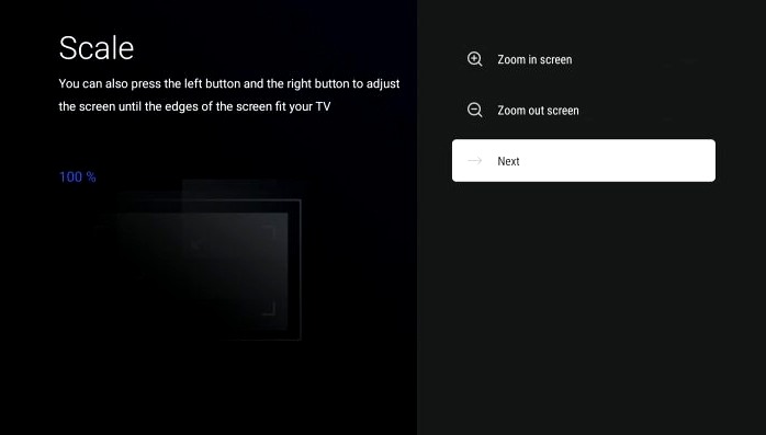 4. Adjust the screen size according to your display effect until the screen edge matches the TV, then select NEXT and press [OK] to proceed to the next step